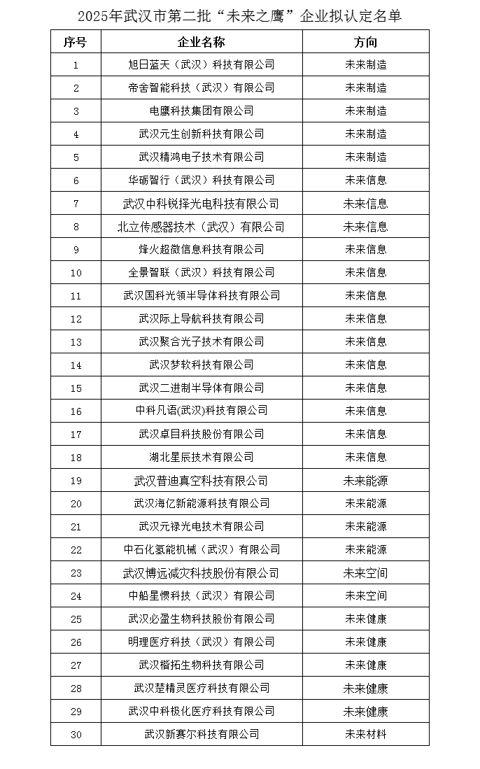 附件:2025年武汉市第二批“未来之鹰”企业拟认定名单